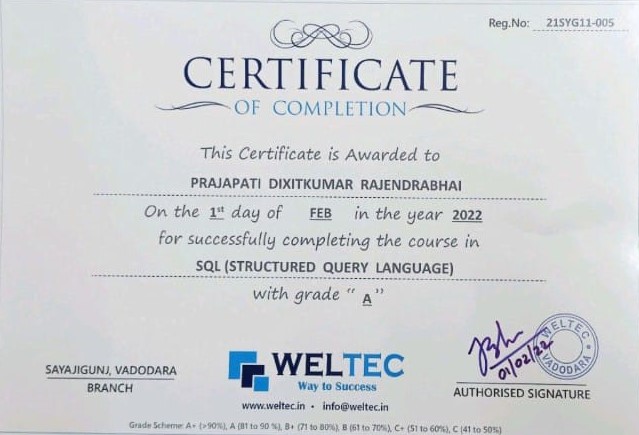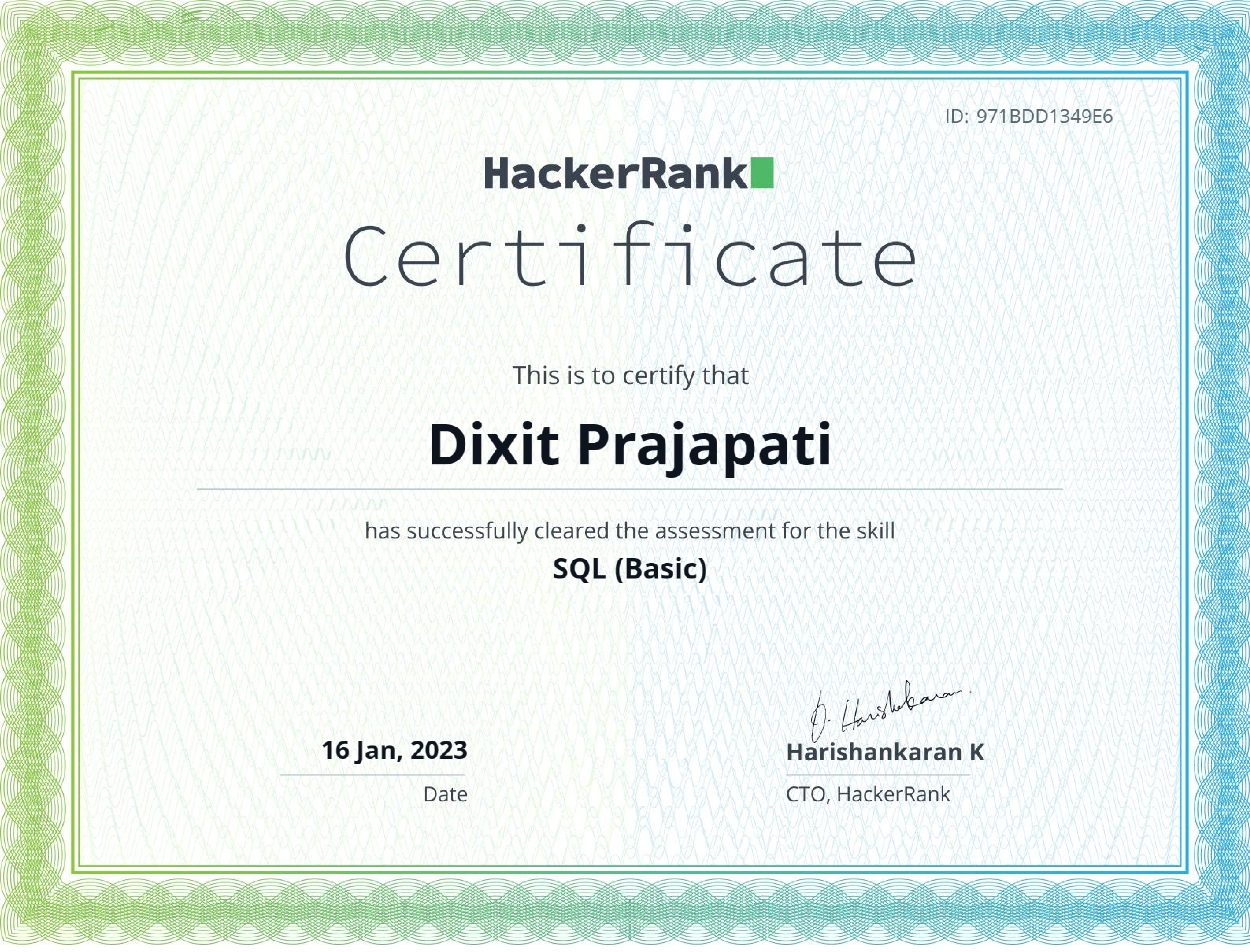 • Institute: HackerRank, Udemy, Coursera , Weltec, BIT